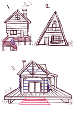 Next thing we have to show is some concepts of the house. Now the interesting thing about this design process is that we really don't see the outside except for one part. Despite this, having a general idea of the home's architecture was important for us to have in mind and so concepts did need to be made here. Our artists Kimberly, Theresa, Rithyra and Nathan all contributed to the house designs. In the end Kimberly brought our house design to a finish and we decided on a look. The hanging plants concept she explored also had the potential to become a design motif as we thought it could be interesting to use that in other spots, but that idea didn't get a chance to go too far.