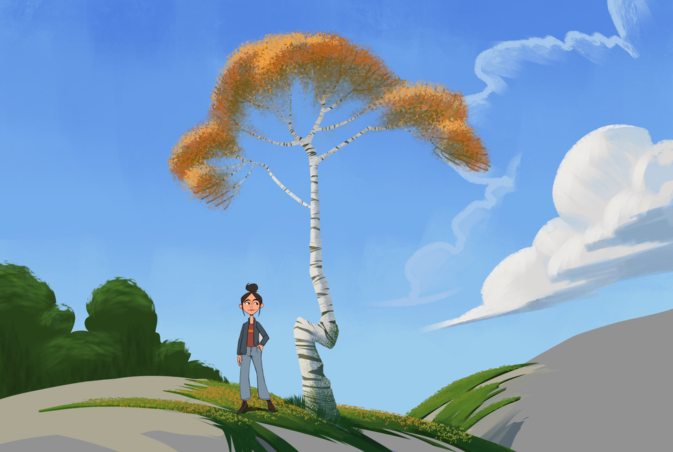 The other big responsibility we had was to narrow down a style of painting for the film. We wanted to make sure that it wasn't too realistic as this would not only clash with the characters, but also this would take way too long with the amount of backgrounds we would need (at this point we still didn't have a final number). So what makes these different from the other designs thus far is that these focus on painting and style, how to approach the problem of painting trees, simplification, and brushwork if it were to exist. Another thing we had to make sure of was that we could actually replicate what we had done multiple times. We had all sorts of levels of experience and so we didn't want to make something too difficult to pick up.